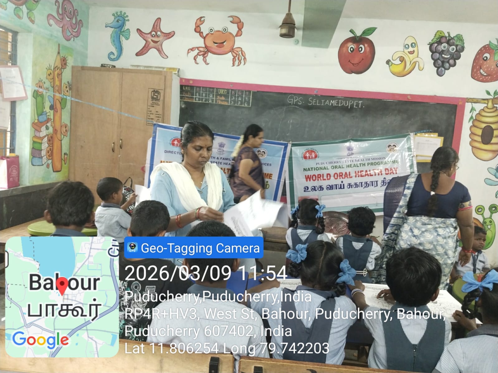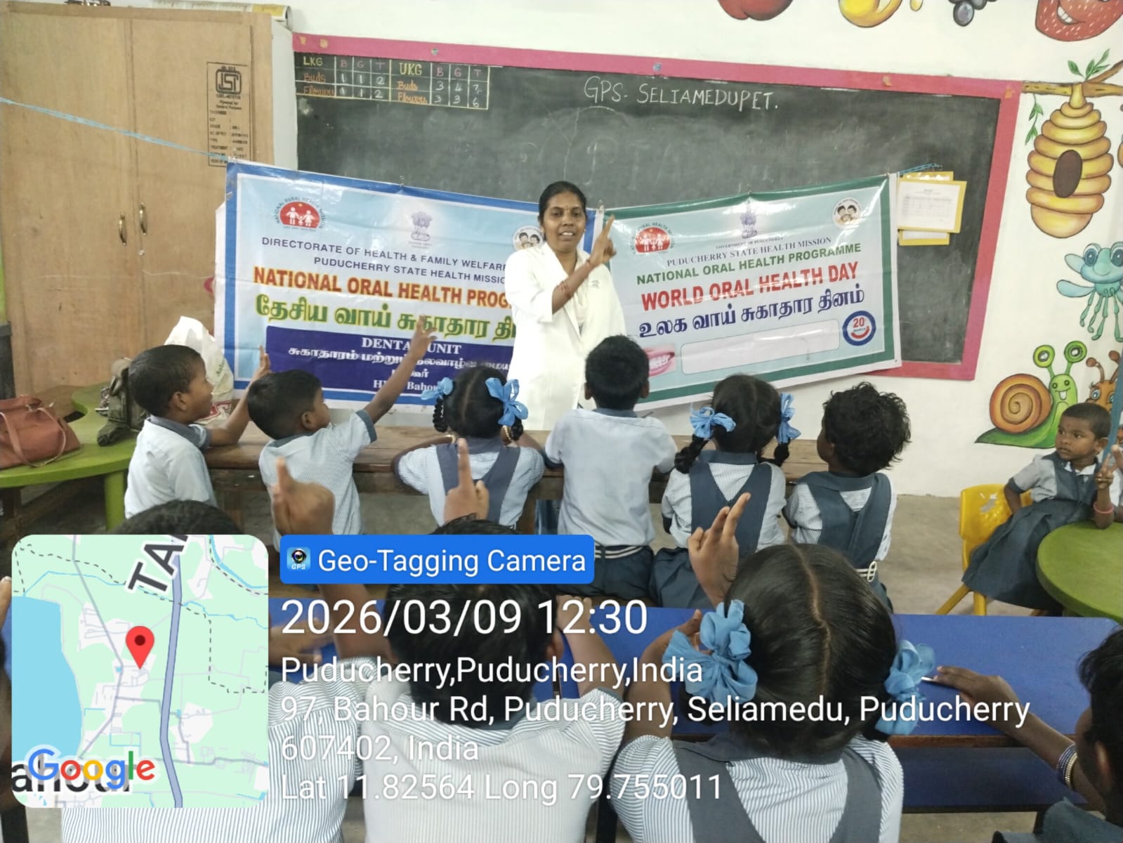 AAM Bahour World Oral Health Day 2026 celebrations, Drawing and colouring competition_ was conducted at GPS Seliyamedu pet on 9/03/26.The theme Happy Mouth is a Happy Life the colouring competition, expressing their ideas on good oral hygiene practices. A special oral health awareness talk was also delivered to students and teachers, emphasizing proper brushing techniques, healthy eating habits, and the importance of regular dental check-ups. Around 20 students from pre primary and class I participated. The program was organised by AAM Bahour