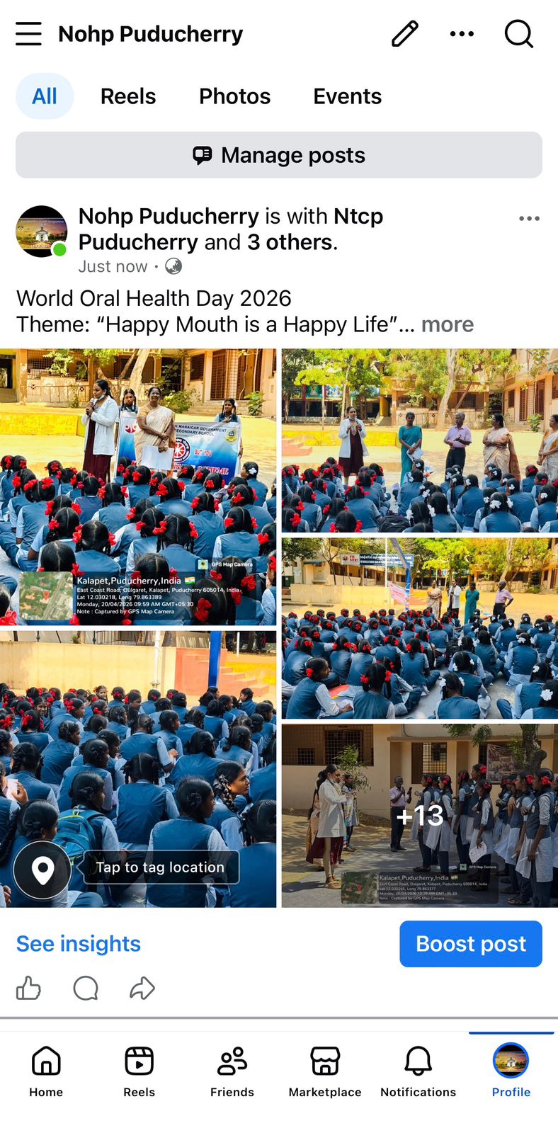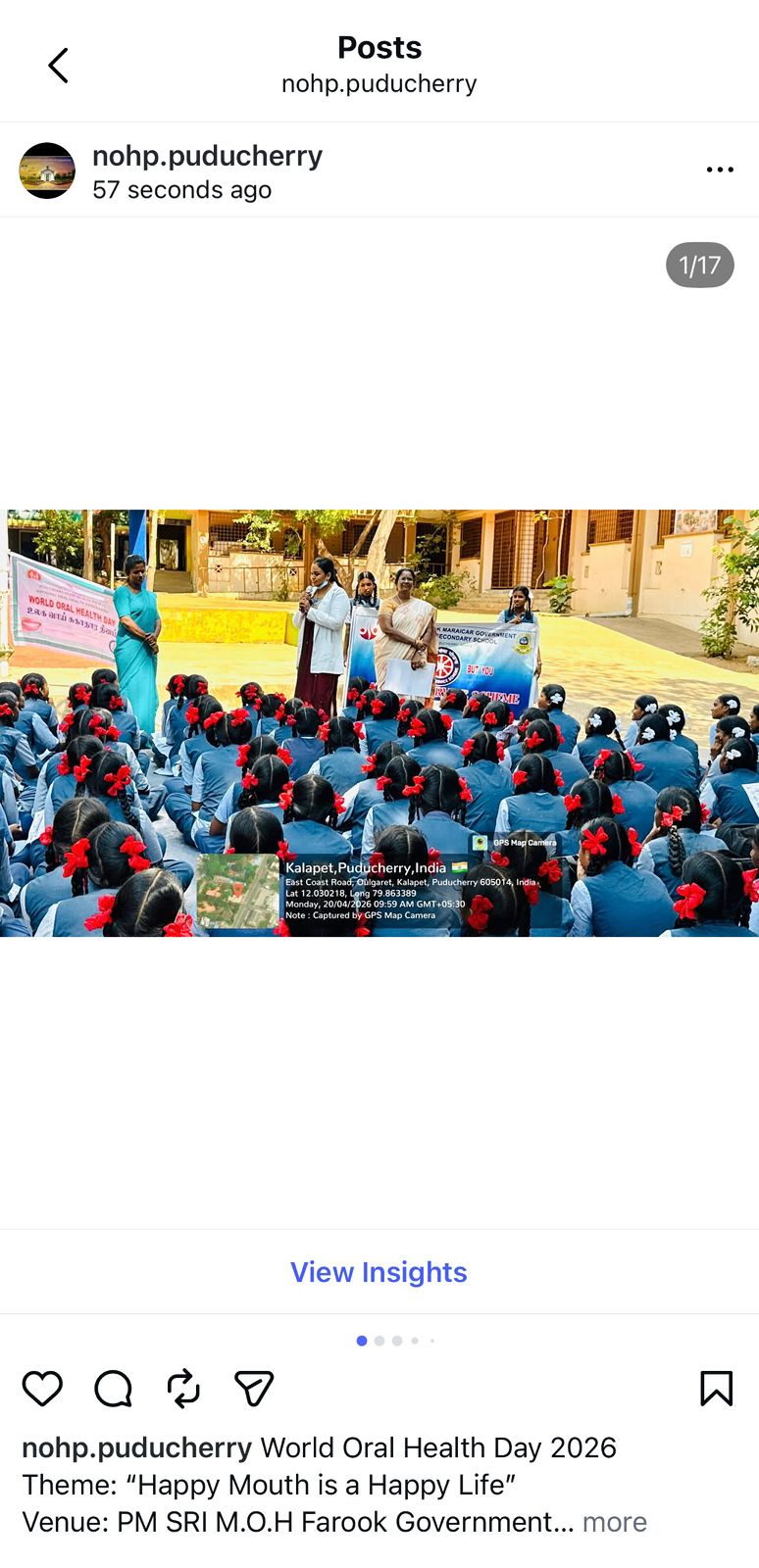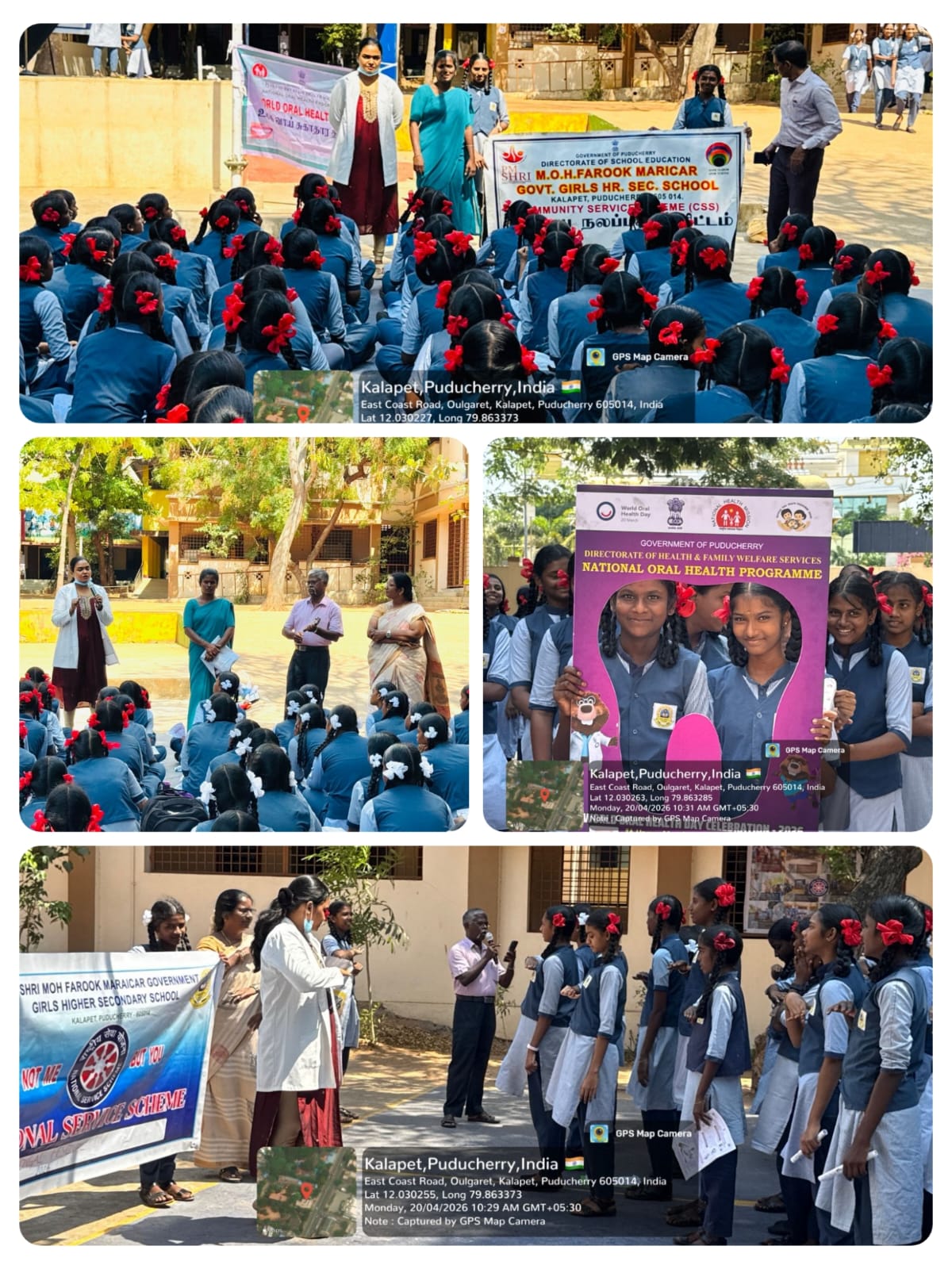 "World Oral Health Day 2026 Report Theme: “Happy Mouth is a Happy Life” Venue: PM SRI M.O.H Farook Government Higher Secondary School Date: 20/04/2026 On the occasion of World Oral Health Day 2026, an oral health awareness program was conducted for 9th to 12th standard students. The session focused on oral hygiene, general dental health, and the harmful effects of tobacco. Common dental problems were explained, and proper brushing techniques were demonstrated using dental models. Students were also educated on maintaining good oral hygiene practices. A total of 180 students and 4 teachers participated in the program. An oral health pledge was taken by all participants. A signature campaign and selfie booth were organized under the theme “Happy Mouth is a Happy Life” to promote awareness. Posters and educational materials on oral health were distributed."