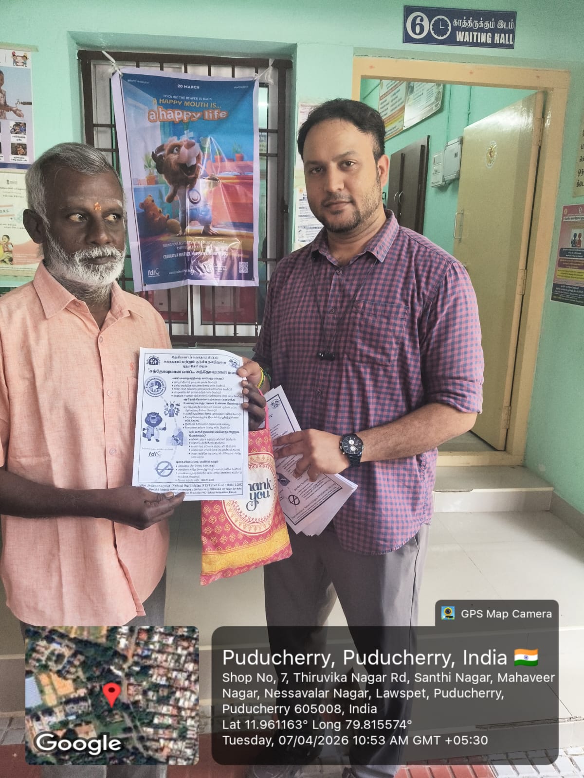 The patients were given awareness on oral health and its relationship to overall health.