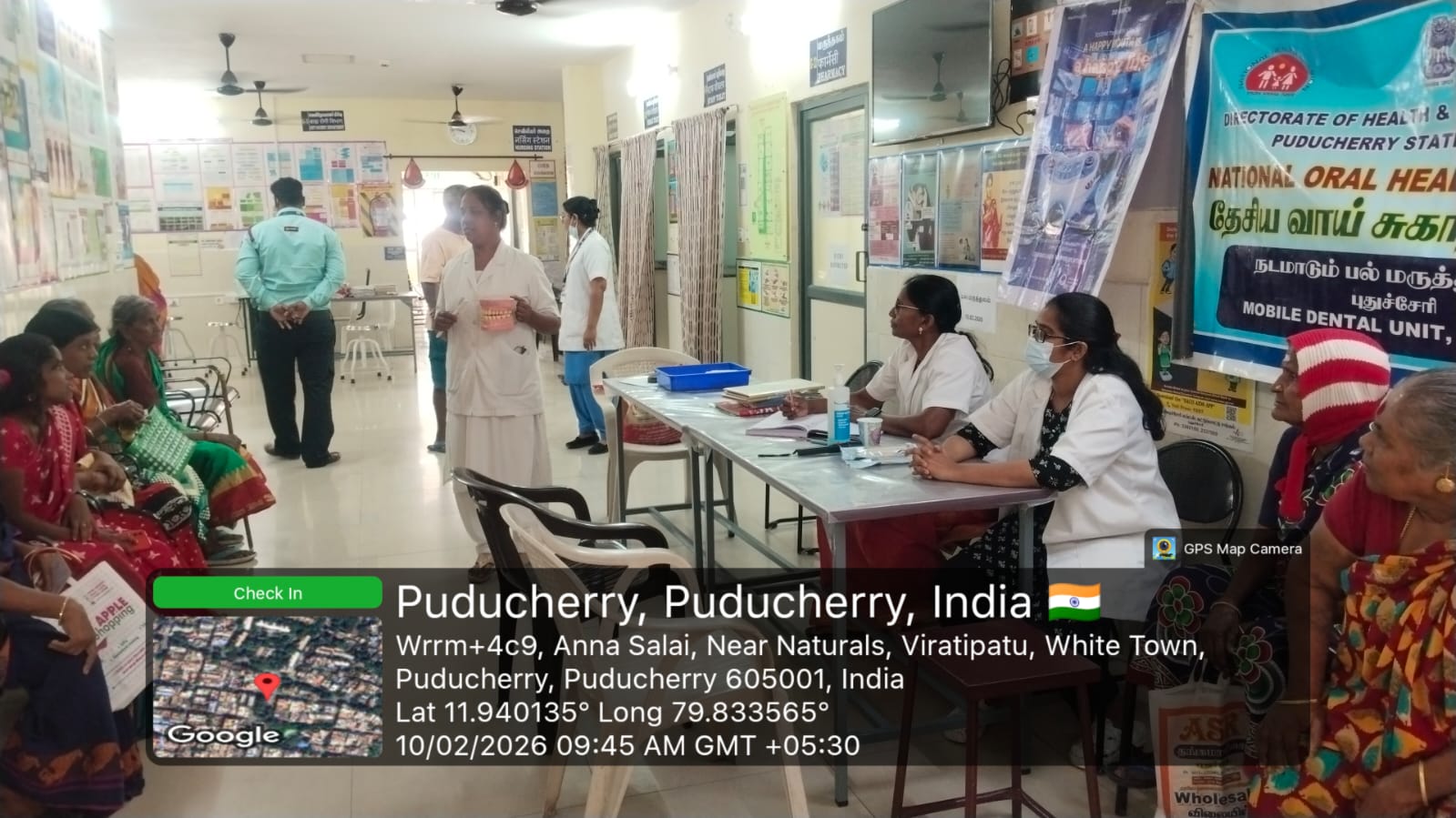An oral screening and treatment camp was conducted at *AAM JIPMER Urban Health Centre, Kurusukuppam* on 10-02-2026. During the camp, oral health screening was carried out for patients attending the *NCD* clinic. The patients were examined for dental caries, gum diseases, oral infections, and early signs of oral cancer. Necessary treatment such as oral prophylaxis, medication advice, and referral for advanced care were provided based on individual needs. Oral health awareness was also given to the patients, emphasizing the importance of maintaining good oral hygiene to prevent complications related to diabetes, hypertension, and other non-communicable diseases. Instructions on correct brushing technique, healthy dietary habits, and harmful effects of tobacco and alcohol use were explained. IEC materials were displayed to reinforce key messages. Nearly *47* beneficiaries attended and benefited from the screening, treatment services, and health education provided during the camp.