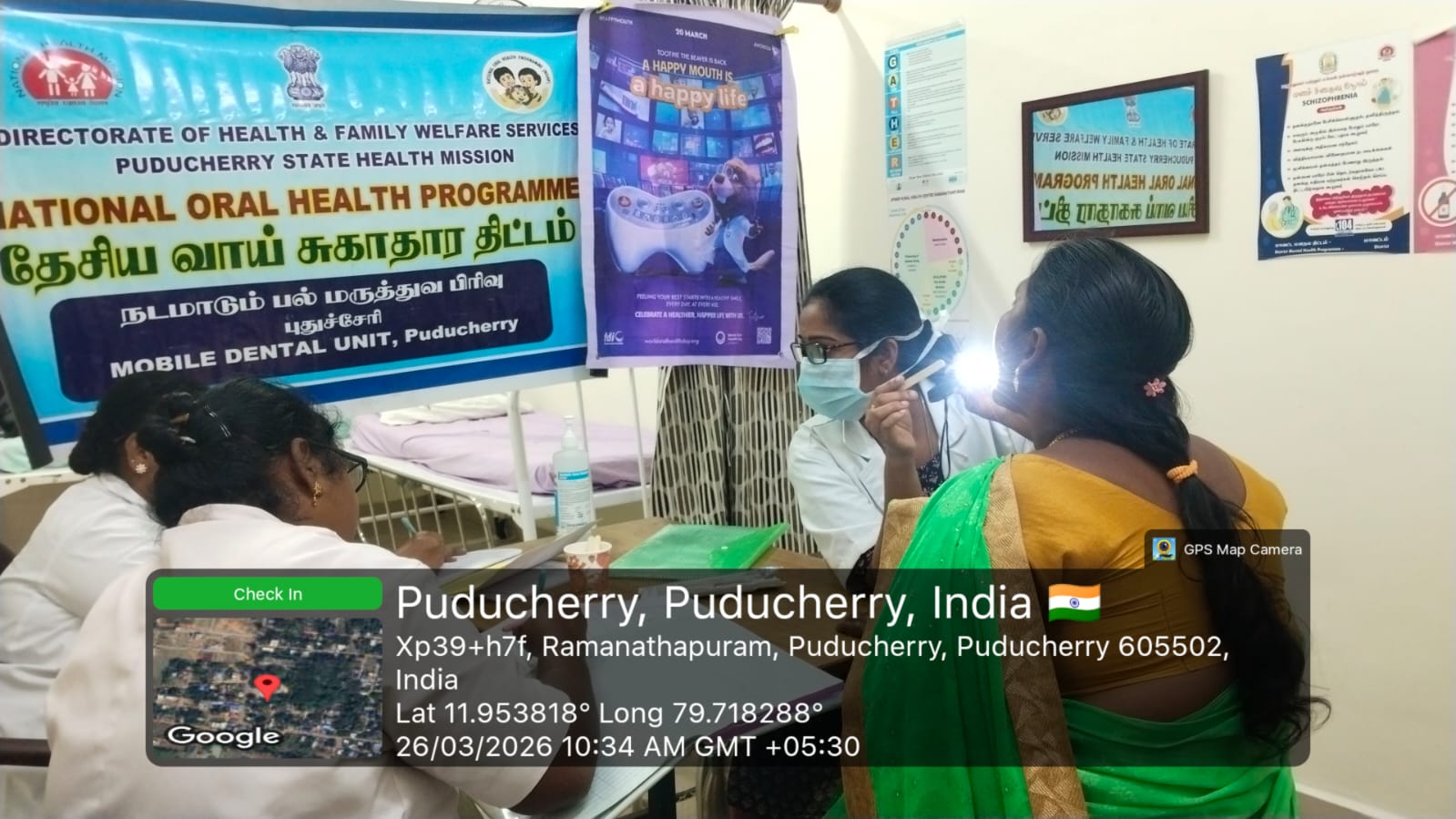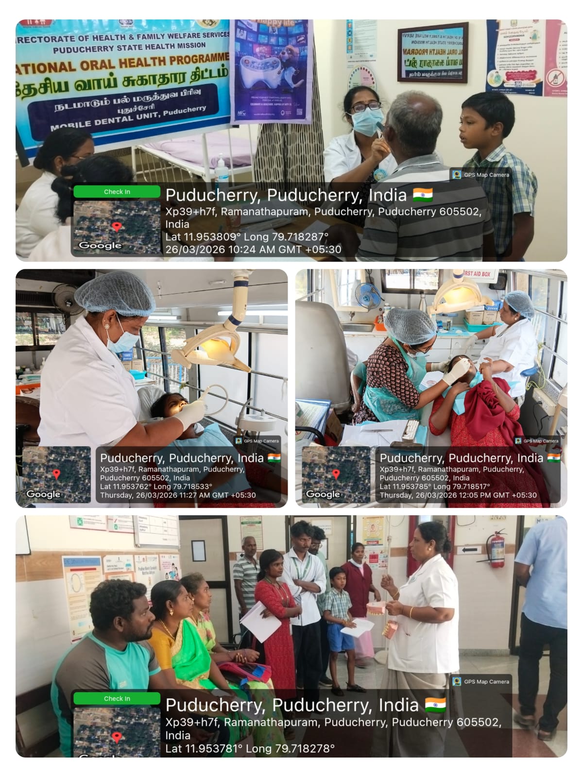 As part of World Oral Health Day *(WOHD)* celebrations, an oral screening and treatment camp was organized at the *JIPMER Ramanathapuram Rural Health Centre* on 26th March 2026. The program aimed to create awareness about the importance of oral hygiene and the prevention of dental diseases among the rural population.During the camp, comprehensive oral screening was carried out, and basic dental treatments were provided to the attendees. Approximately *45* beneficiaries utilized the services and received appropriate guidance for maintaining good oral health. Brushing techniques were effectively demonstrated using dental models, along with the support of IEC posters, making the session more interactive and easy to understand.