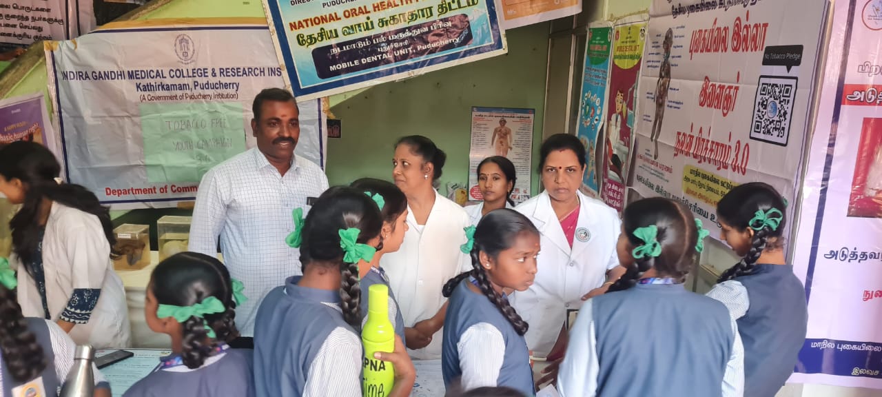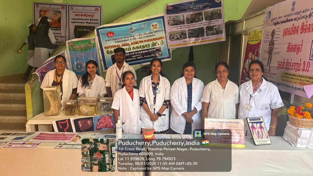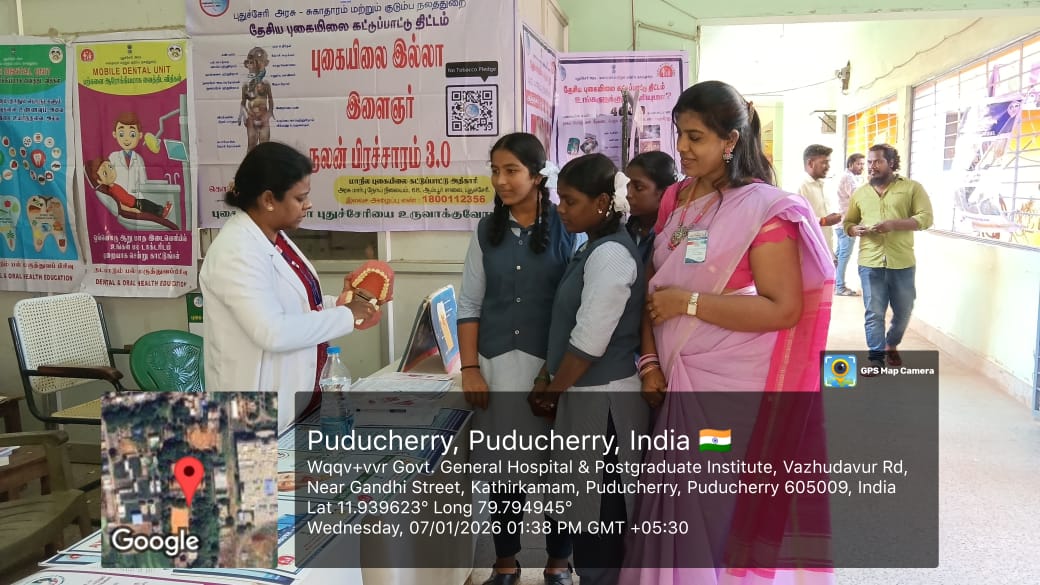 The Honorable Chief Minister visited the _National Oral Health Programme_ stall and appreciated the efforts taken to educate students and the general public on oral health awareness and tobacco awareness with specimens . The interaction highlighted the importance of integrating health education with school-based programs.