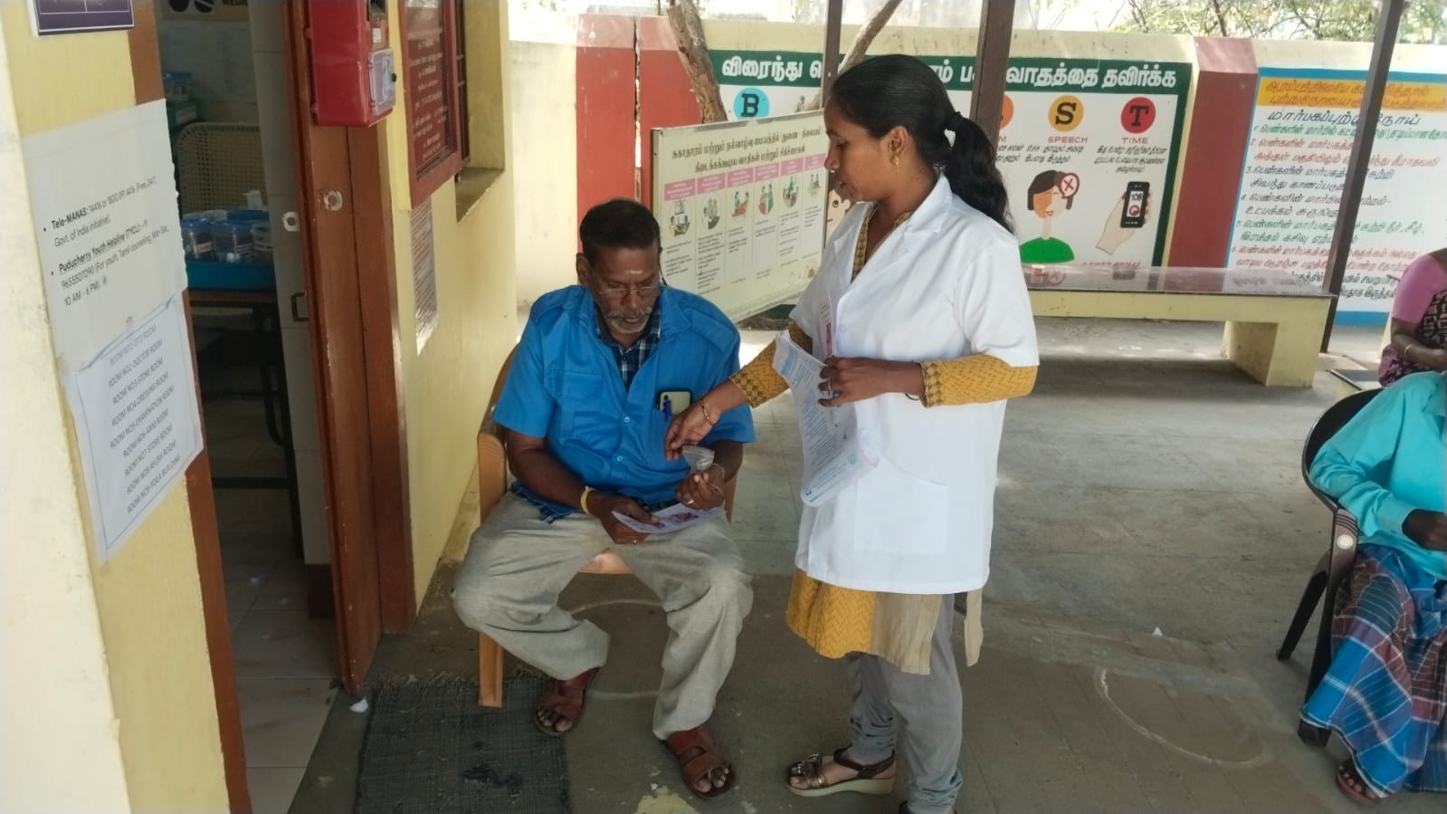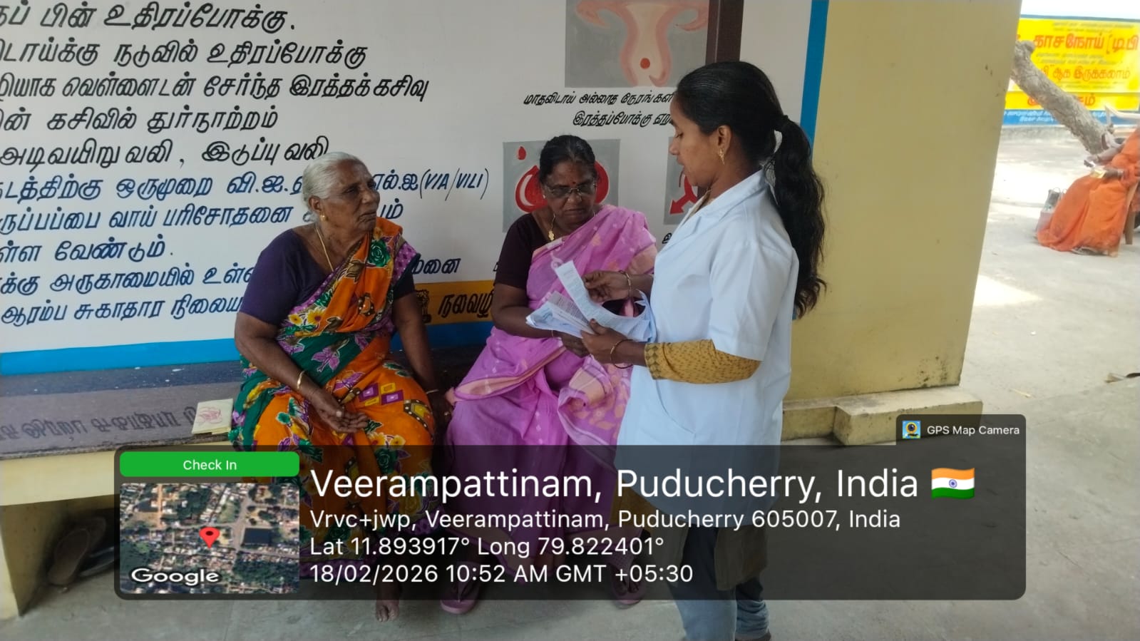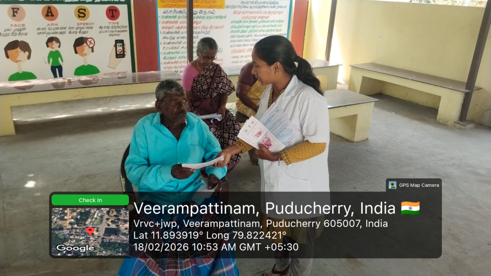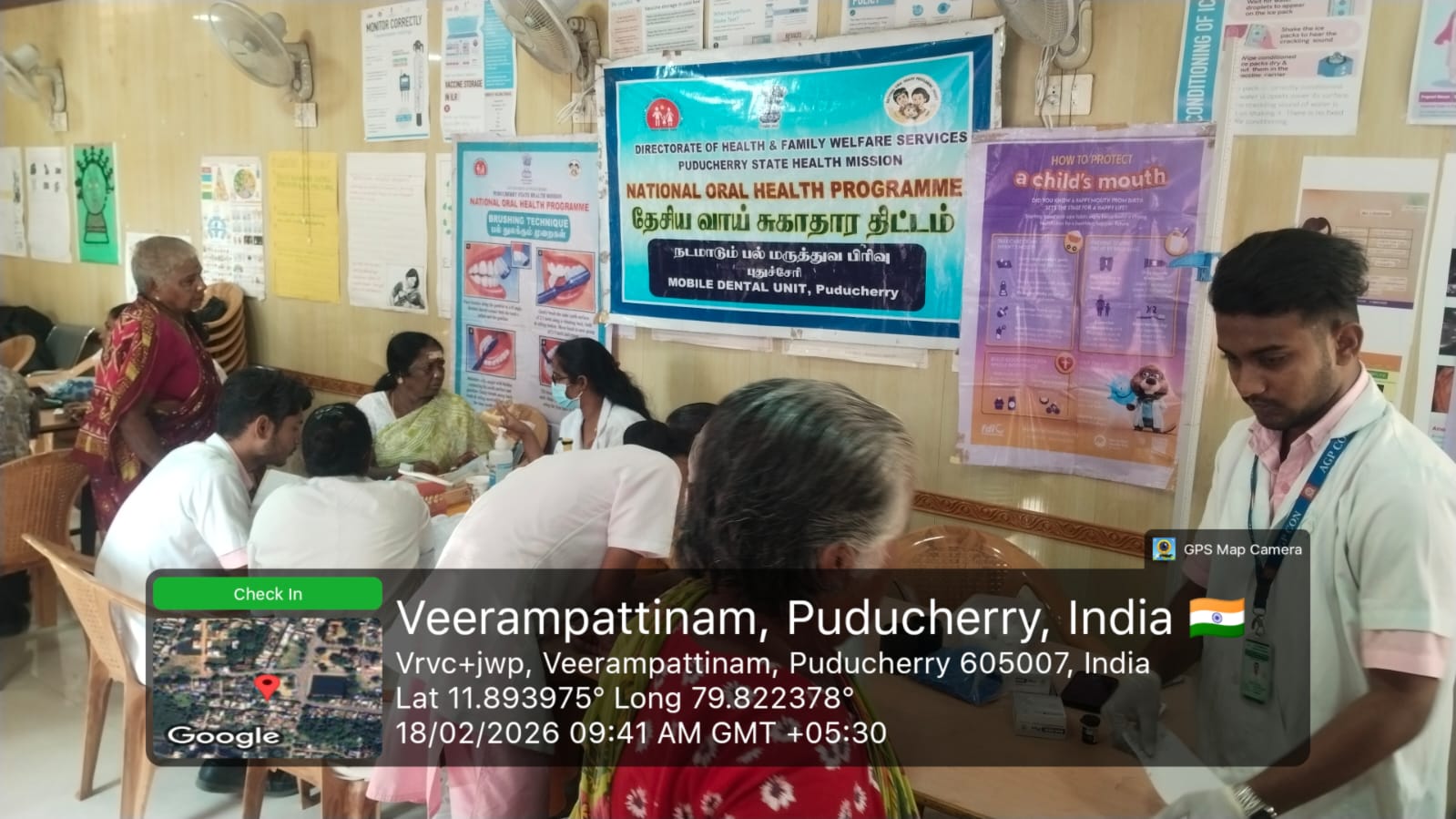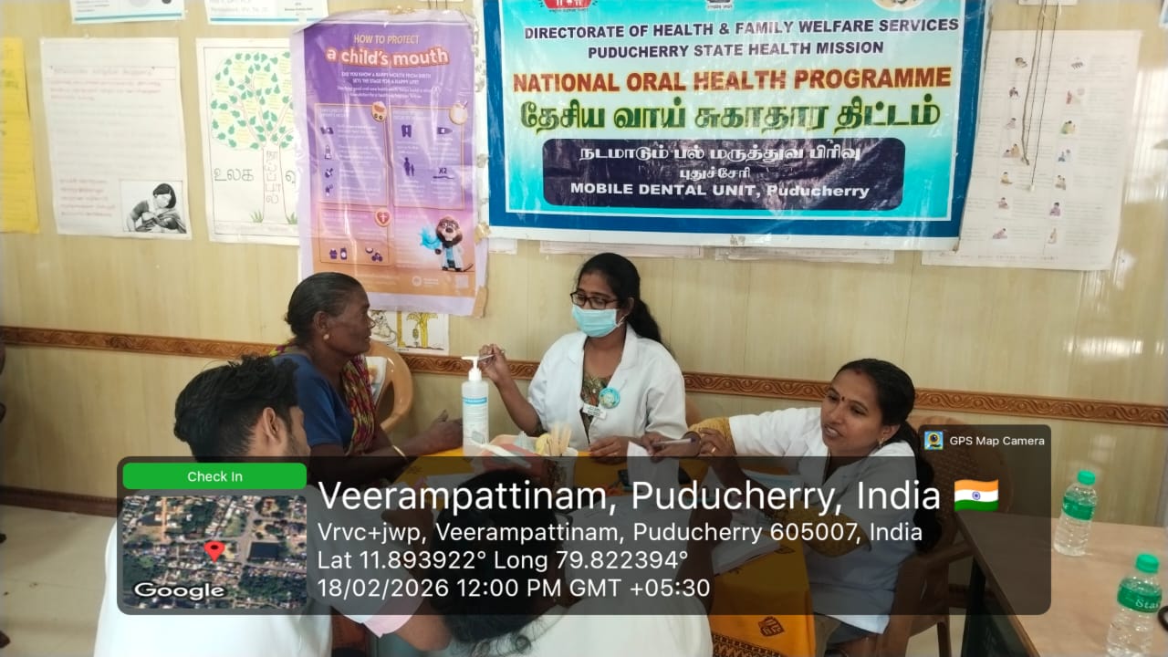 An oral screening camp was conducted at *Periyaveerampattinam* on 18-02-2026 as part of the _Seashore Integrated Health Camp_ organized by *Pondicherry AIDS Society Organization.* The camp aimed to improve oral health awareness and provide early screening services to the coastal community. Informative fact sheets were displayed to educate the public about the harmful effects of tobacco use and the importance of maintaining good oral hygiene.