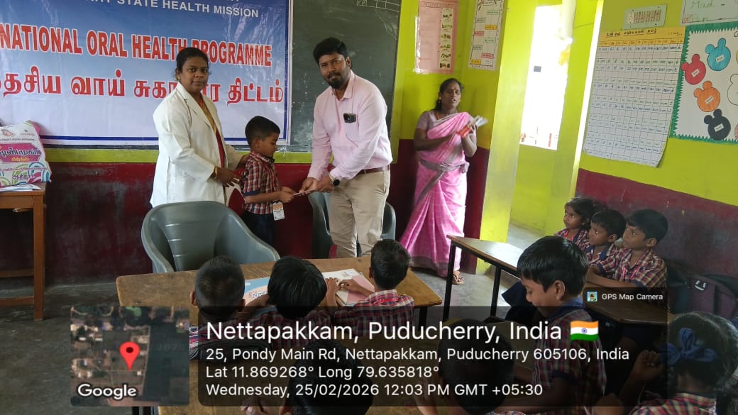 25/02/26 Dental unit- PHC Nettapakkam # School Dental Health Program @ Sri Saraswati Vidhyalaya High School, Nettapakkam.