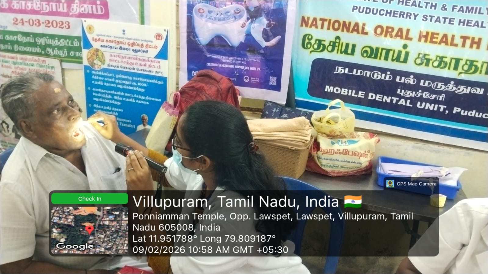"An Oral Screening and Awareness services were conducted as part of the *Mega Special Health Camp* held at *Ponniamman Koil, Lawspet* by *UPHC Avvai nagar* on 9-2-2026. The camp provided comprehensive health services including dental check-up, blood pressure screening, hypertension evaluation, ENT examination, eye check-up, and general physician consultation. Specialists from various departments actively participated to ensure complete healthcare support for the public.