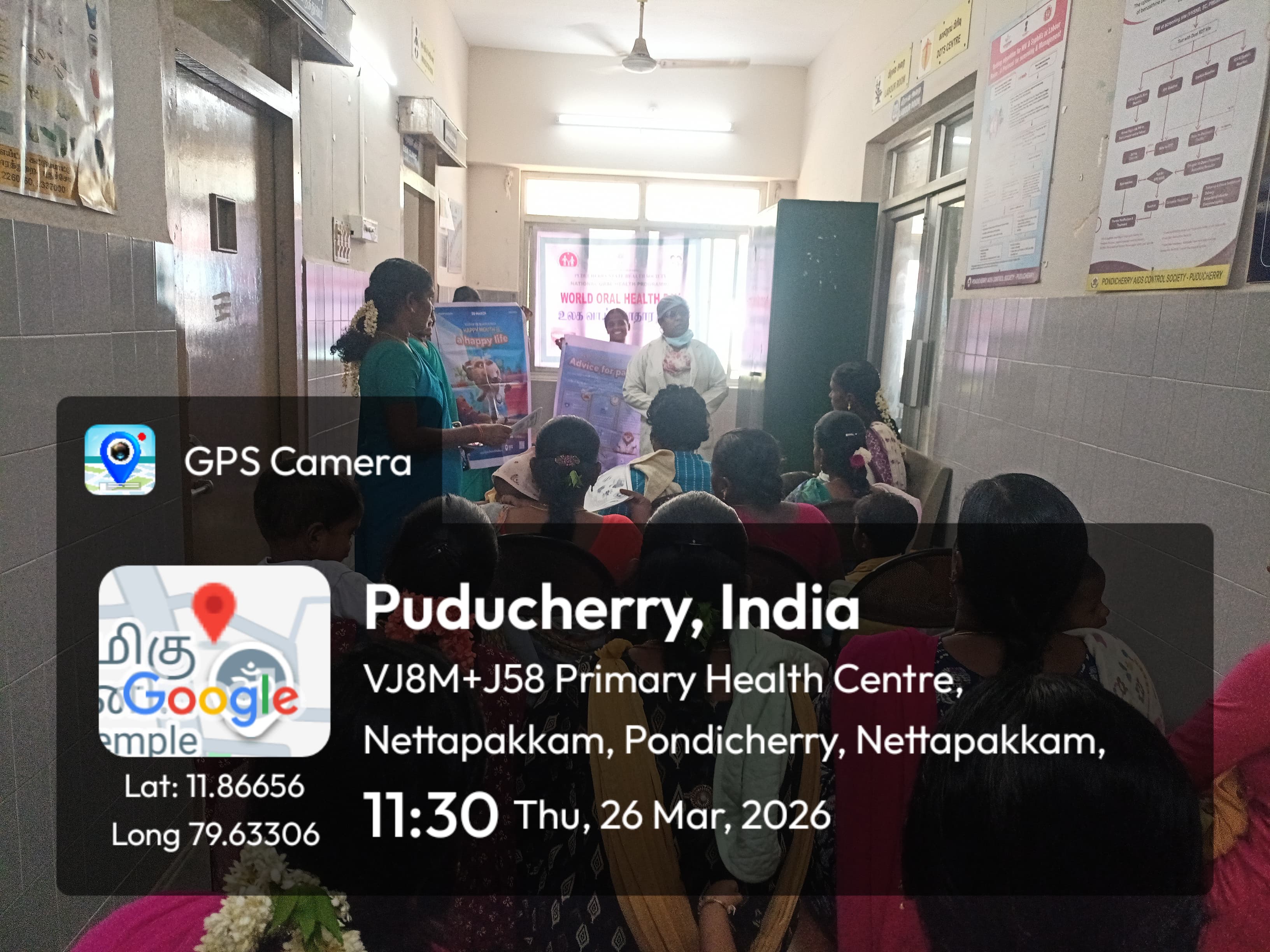 26/03/26 Dental unit, PHC Nettapakkam # WOHD 2026 Celebration @ Well Baby clinic: The mothers were given awareness on child's teeth and oral health from birth and to practice healthy habits to prevent / reduce tooth decay in infants and children. Steps to clean the gum pads after feeding were enunciated. Bad oral behaviours like mouth breathing, thumb sucking, nail biting, lip biting, cheek biting and tongue thrusting were highlighted and its intervention at the earliest were stressed upon for good jaw and tooth development. Insights were given on habit breaking appliance, advantages and disadvantages of oral pacifiers, role of fluoridated tooth paste and regular dental visit. Brushing techniques were demonstrated using dental models and posters. Ill effects of Tobacco and its impact on children were emphasised. Oral hygiene pledge was taken. Oral health pamphlets were distributed to promote good oral behaviours and for future references.