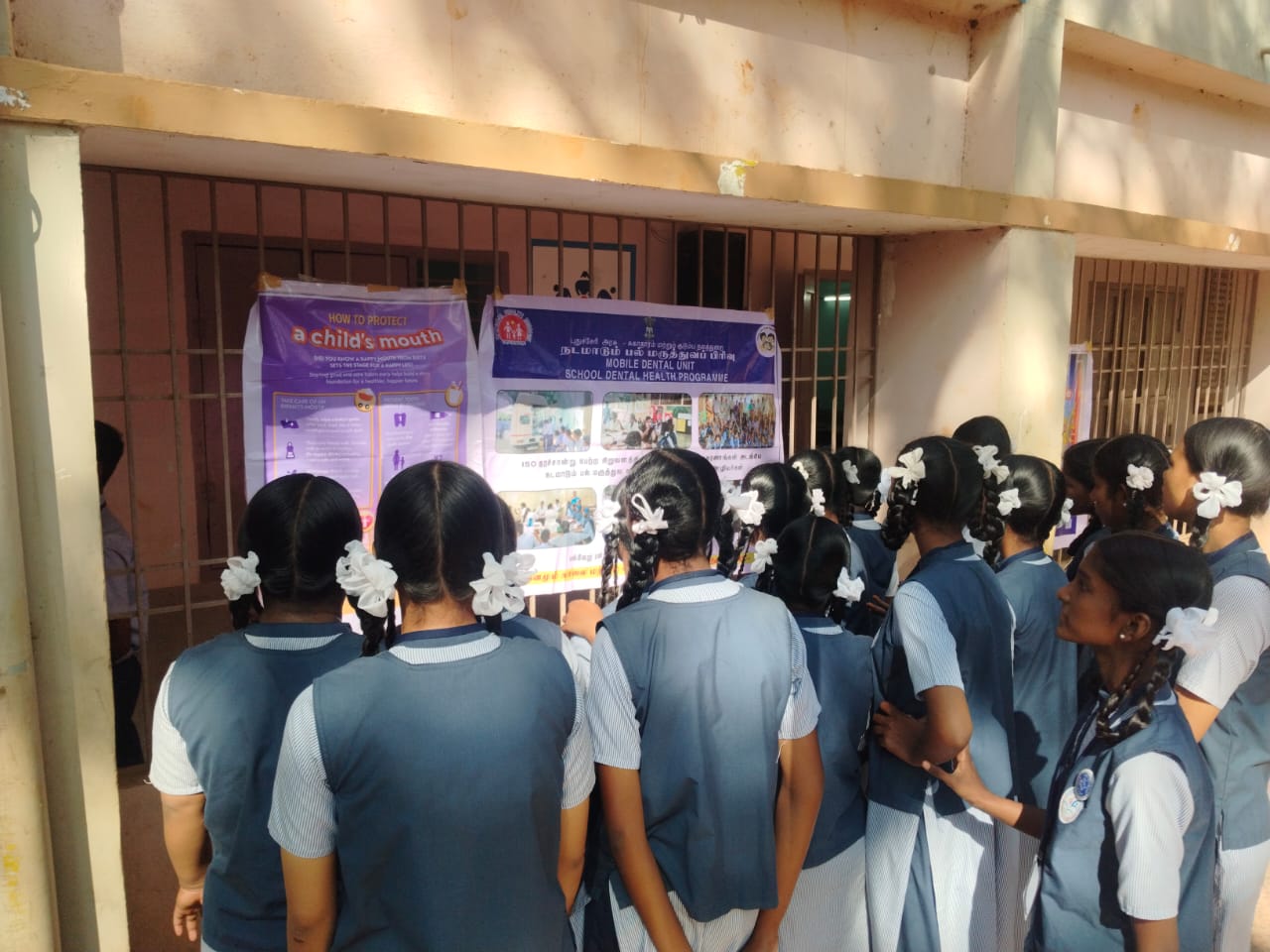An oral health and tobacco awareness program was conducted by the School - MDU team at _Government High School,_ Kombakkam, on 22/01/2026. A health talk was delivered to students on the ill effects of tobacco and the importance of preventing oral cancer. The theme *“Happy Mouth Is A… Happy Life”* was introduced to emphasize the role of good oral hygiene in overall well-being. Oral hygiene education was provided, and correct brushing techniques were demonstrated using posters, banners, and dental models.