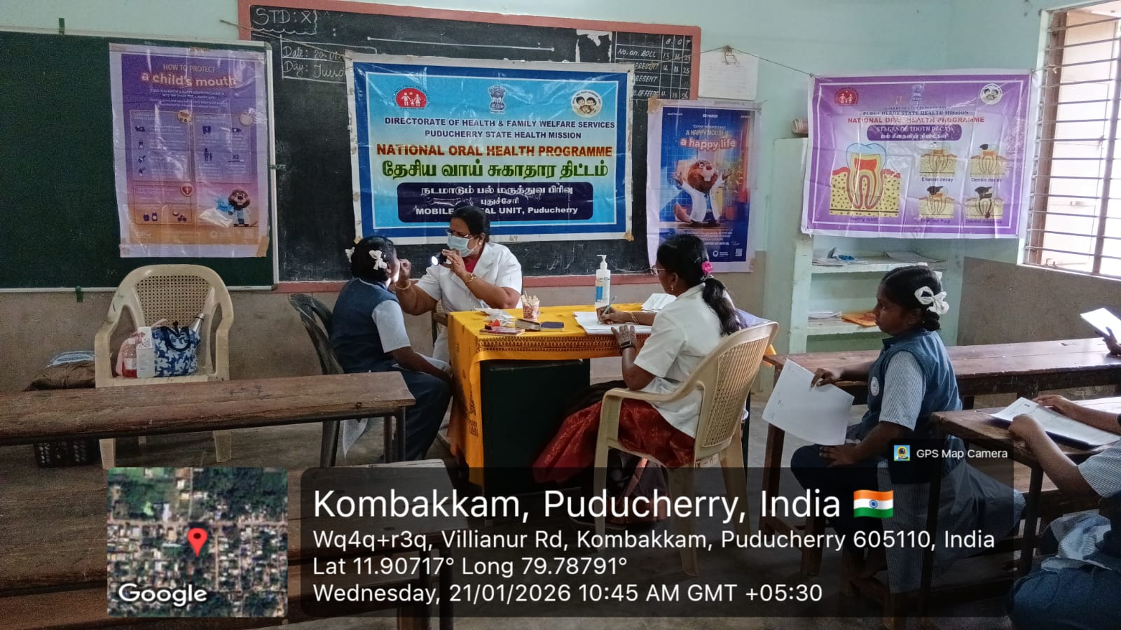 A Dental Health Program was conducted at the Government High School, Kombakkam on 21/01/26. The program aimed to promote oral health awareness among students and encourage healthy dental practices from an early age.