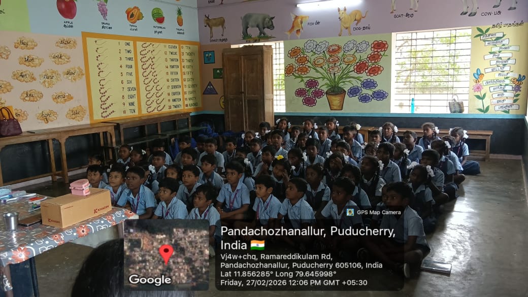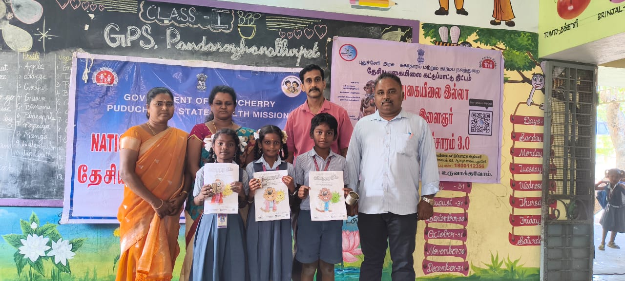 "27/2/26  Dental unit/TCC - PHC Nettapakkam @ GPS Pandasozhanallurpet . *The students were given awareness on 1) Oral hygiene measures , Dos and Don'ts in oral care.  Brushing techniques demonstrated using dental models and posters. 2) Interference of the Tobacco industry and their tactics used in Tobacco products like appealing flavours - candy, fruit and dessert flavours  to attract the youth to addiction were highlighted.  Second hand smoke  & Third hand smoke and its vulnerability among children and adolescents were explained. 3)  Pamphlets were distributed. 4) *Drawing/ Colouring Competition* was conducted with the theme "" A happy mouth is a happy life"". This initiative helps in good oral hygiene practices among the school children.