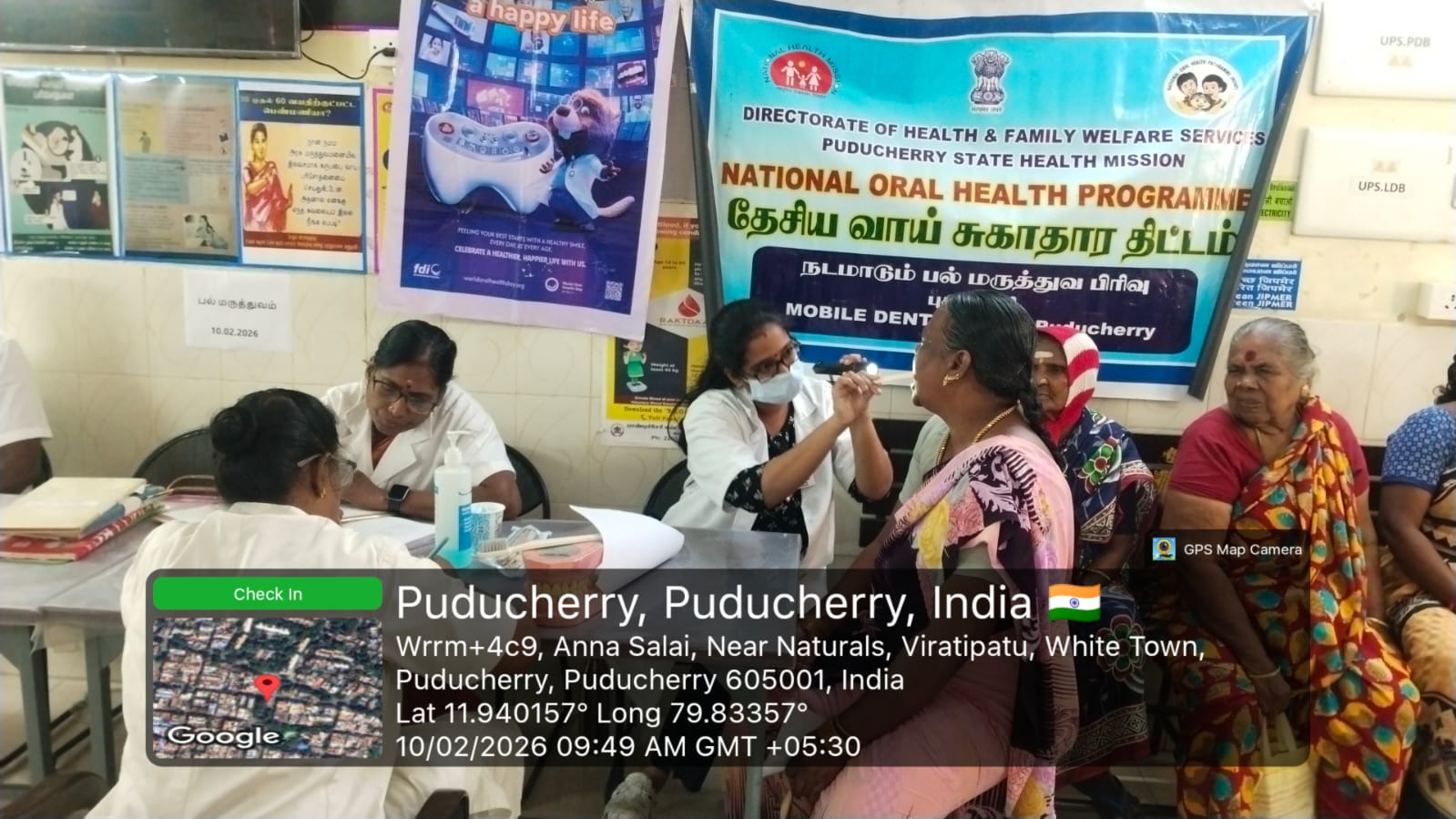 An oral screening and treatment camp was conducted at *AAM JIPMER Urban Health Centre, Kurusukuppam* on 10-02-2026. During the camp, oral health screening was carried out for patients attending the *NCD* clinic. The patients were examined for dental caries, gum diseases, oral infections, and early signs of oral cancer. Necessary treatment such as oral prophylaxis, medication advice, and referral for advanced care were provided based on individual needs. Oral health awareness was also given to the patients, emphasizing the importance of maintaining good oral hygiene to prevent complications related to diabetes, hypertension, and other non-communicable diseases. Instructions on correct brushing technique, healthy dietary habits, and harmful effects of tobacco and alcohol use were explained. IEC materials were displayed to reinforce key messages. Nearly *47* beneficiaries attended and benefited from the screening, treatment services, and health education provided during the camp.