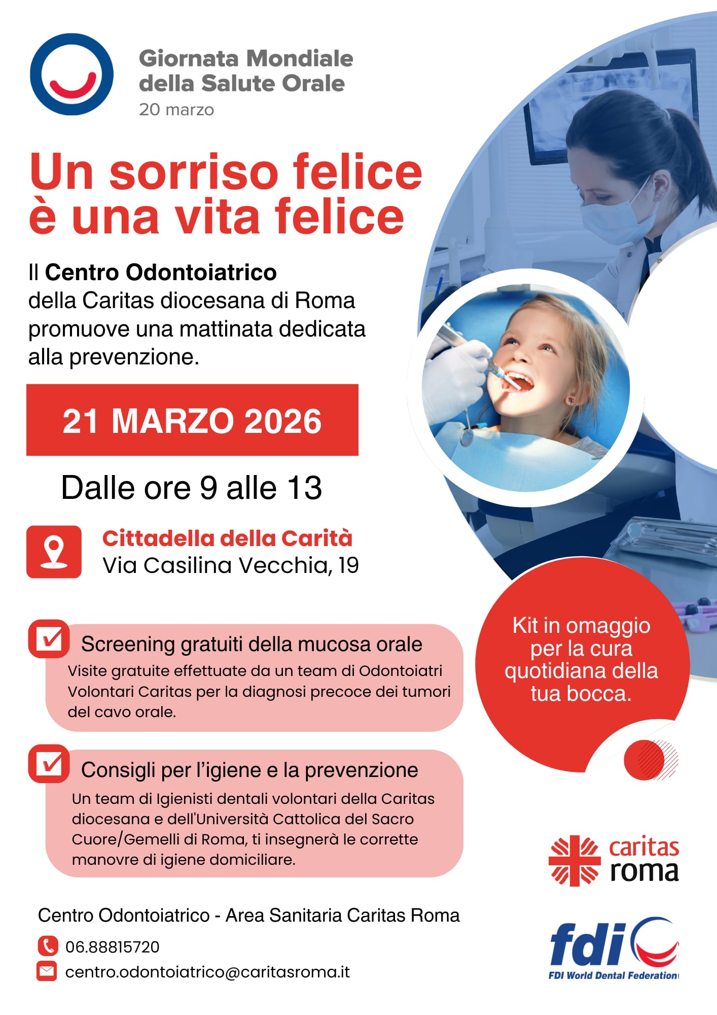 Evento di Promozione della Salute Orale attraverso lezioni di igiene orale domiciliare. Screening oncologico.